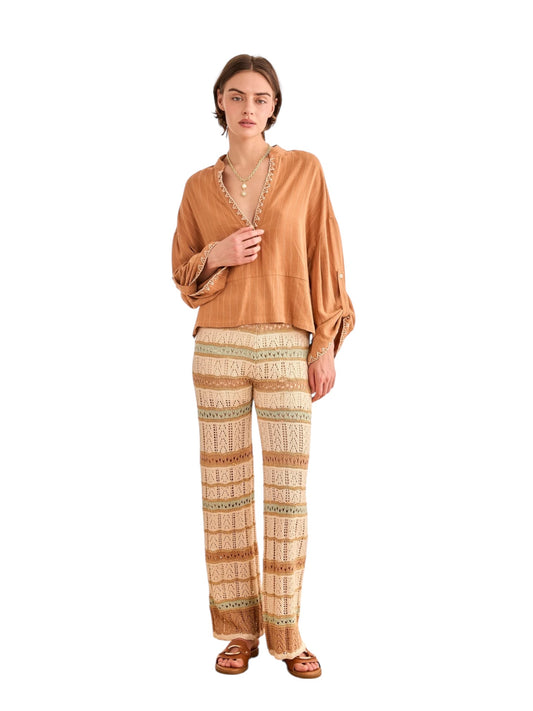 BLUSA OVERSIZED LINO MAO RAYA DIPLOMÁTICA - CAMEL