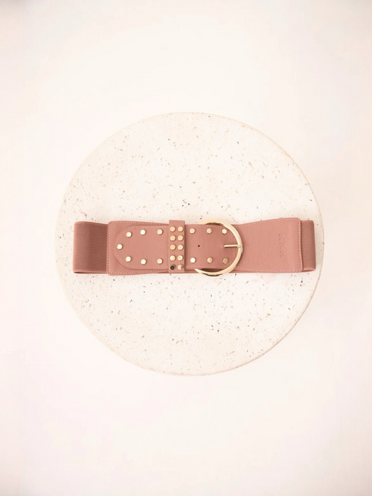 CINTURÓN ELÁSTICO TACHUELAS ROSA