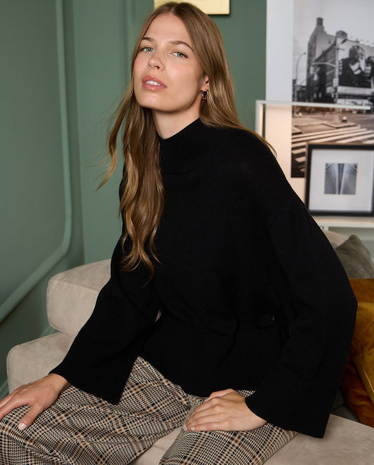 JERSEY SUAVE CON MANGA ACAMPANADA NEGRO