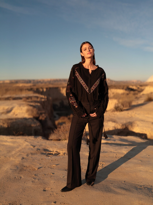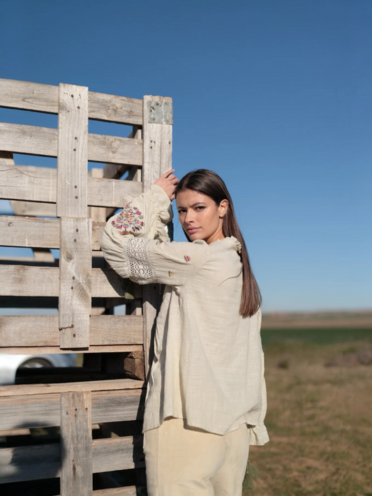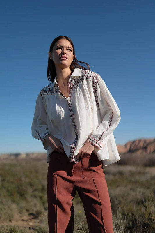 BLUSA VISCOSA CON BORDADO CONTRASTE