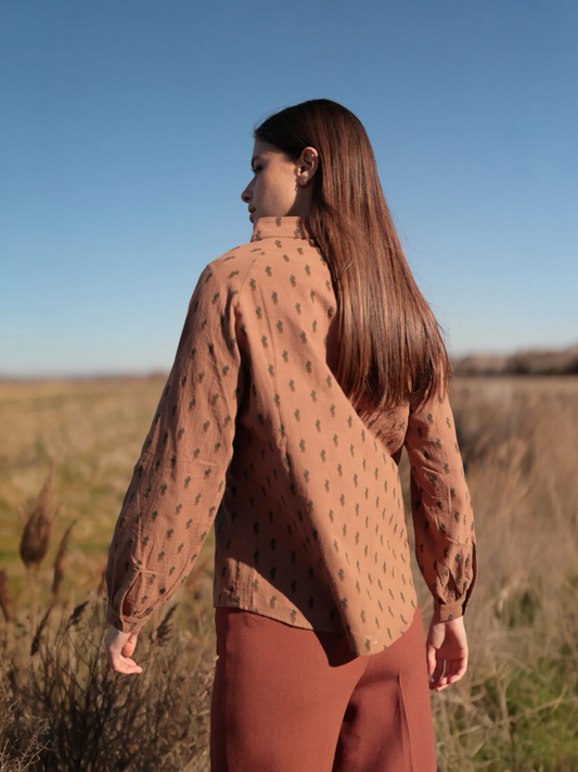 BLUSA CAMISERA FLORES RETRO NEGRO
