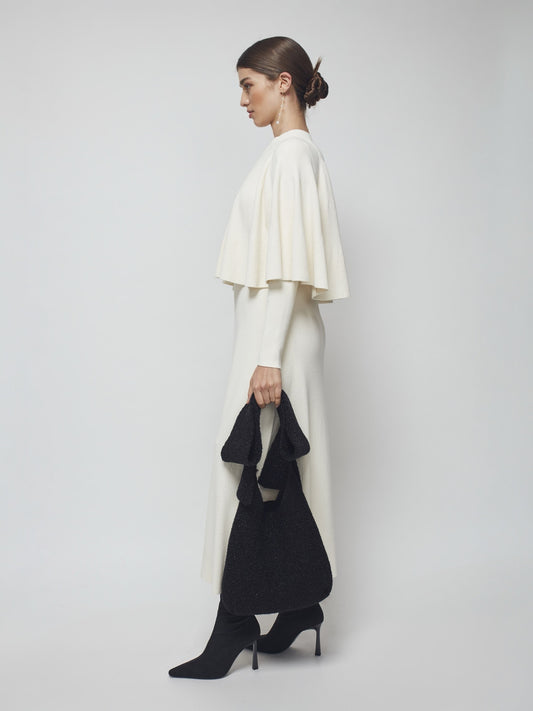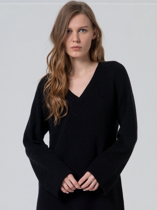 VESTIDO TRICOT OVERSIZE ESCOTE PICO NEGRO