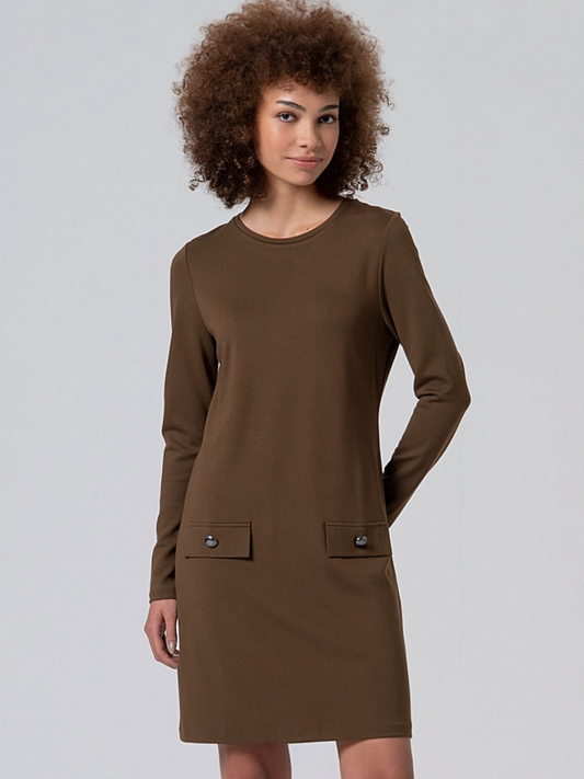 VESTIDO CORTO Y RECTO EVASÉ KAKI OSCURO