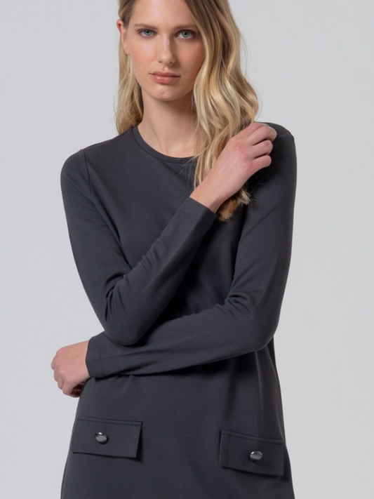 VESTIDO CORTO Y RECTO EVASÉ GRIS OSCURO