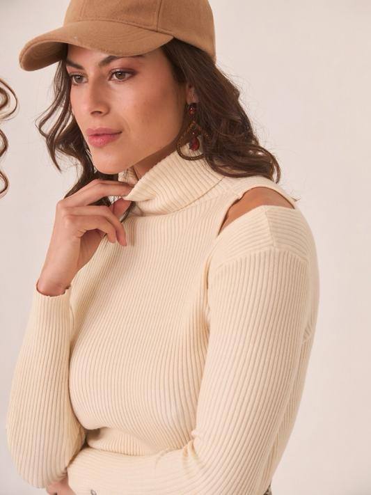 REBAJASJERSEY CUELLO ALTO CUT OUT IVORY