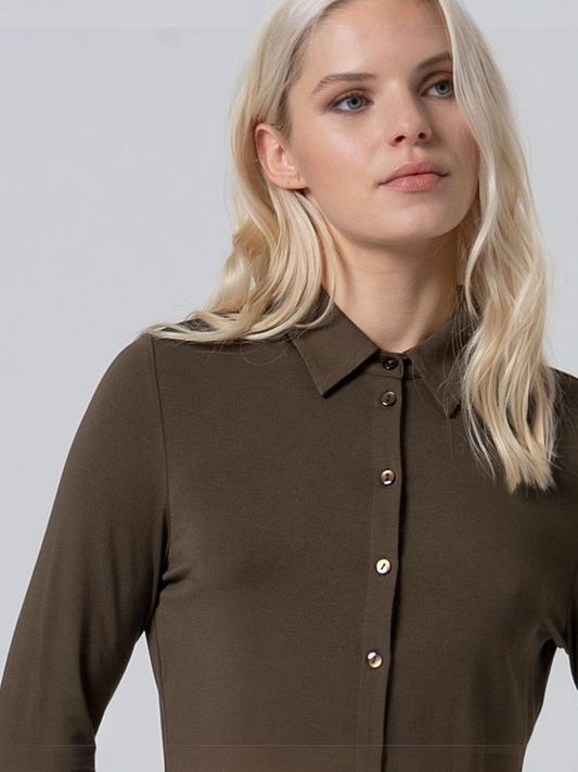 CAMISA ELÁSTICA Y SUAVE DE BAMBÚ KAKI OSCURO
