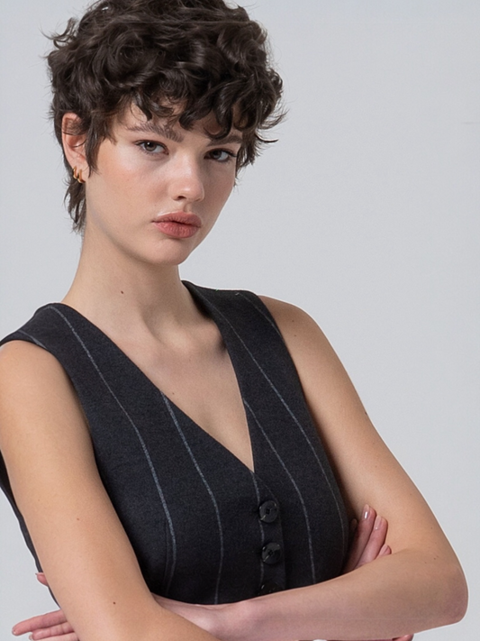 CHALECO LARGO CON RAYA DIPLOMÁTICA GRIS OSCURO
