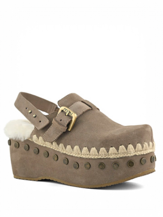 MOU ZUECO SUEDE CLOG BACK STRAP ELEPHANT GREY