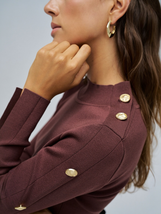 JERSEY DE CUELLO CISNE BOTONES METALIZADOS CANELA