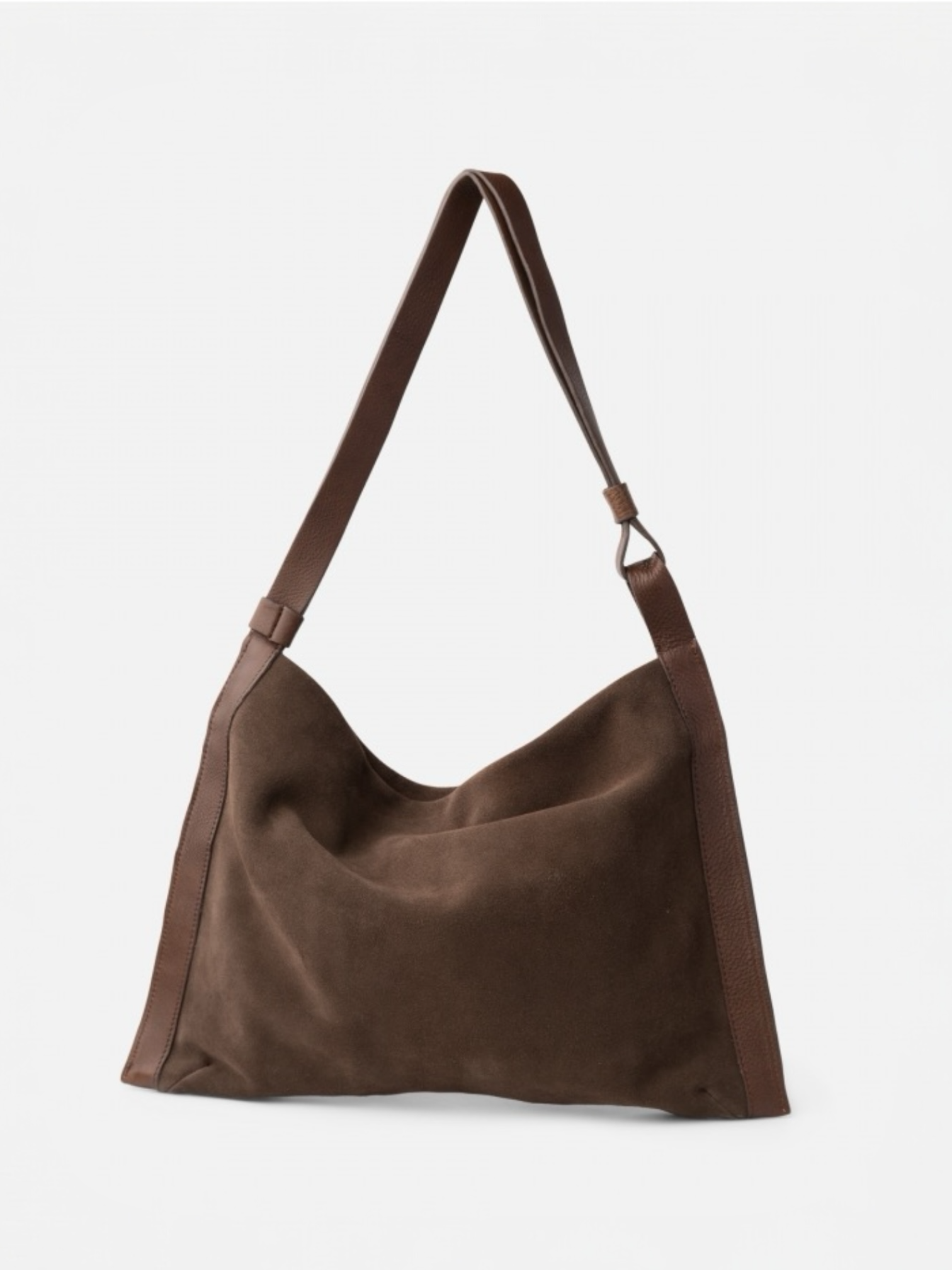 Hobo de serraje hidrofugado (repelente al agua). Asa de hombro. Cierre con cremallera. Bolsillos internos. Forro de algodón.