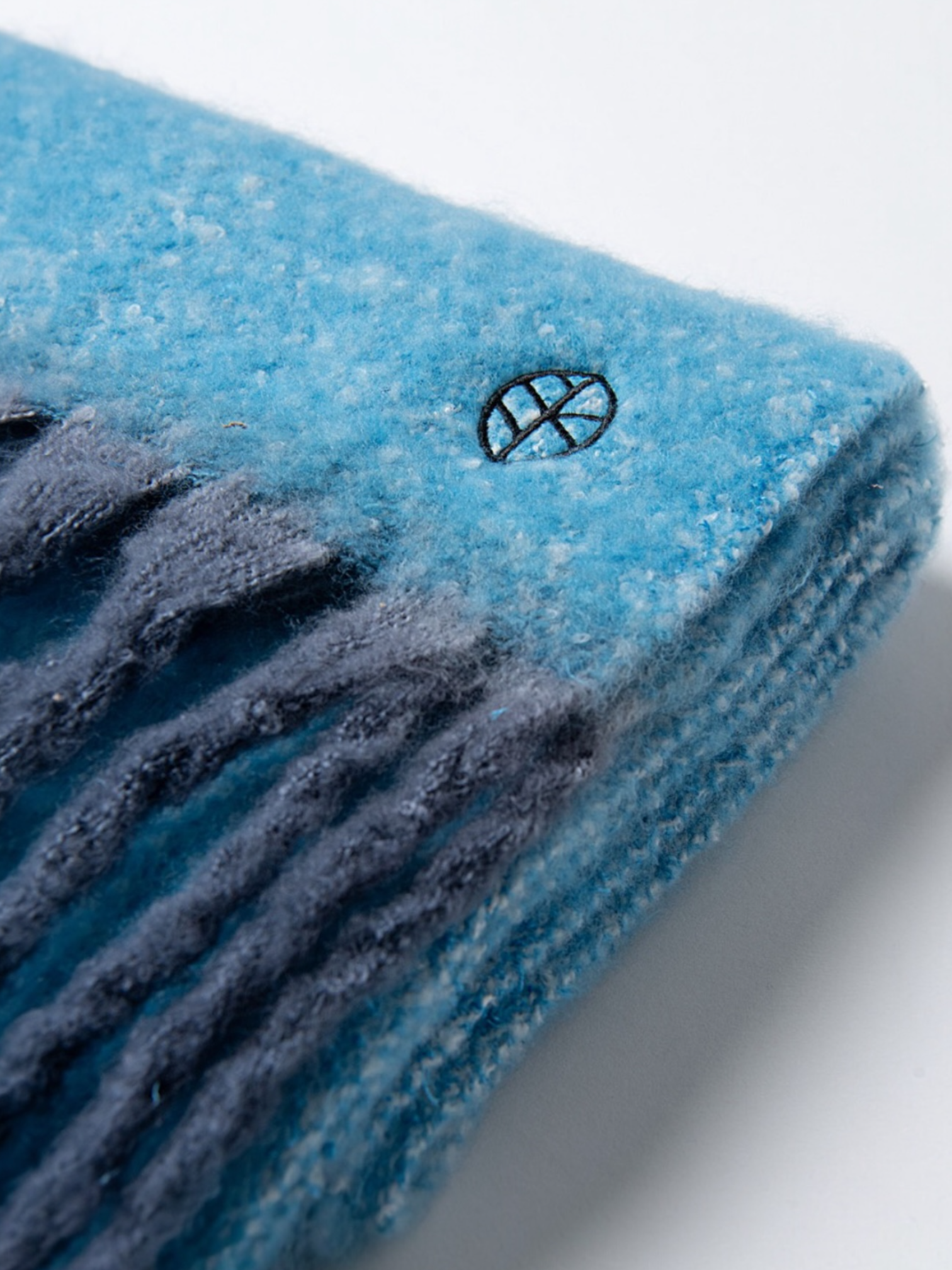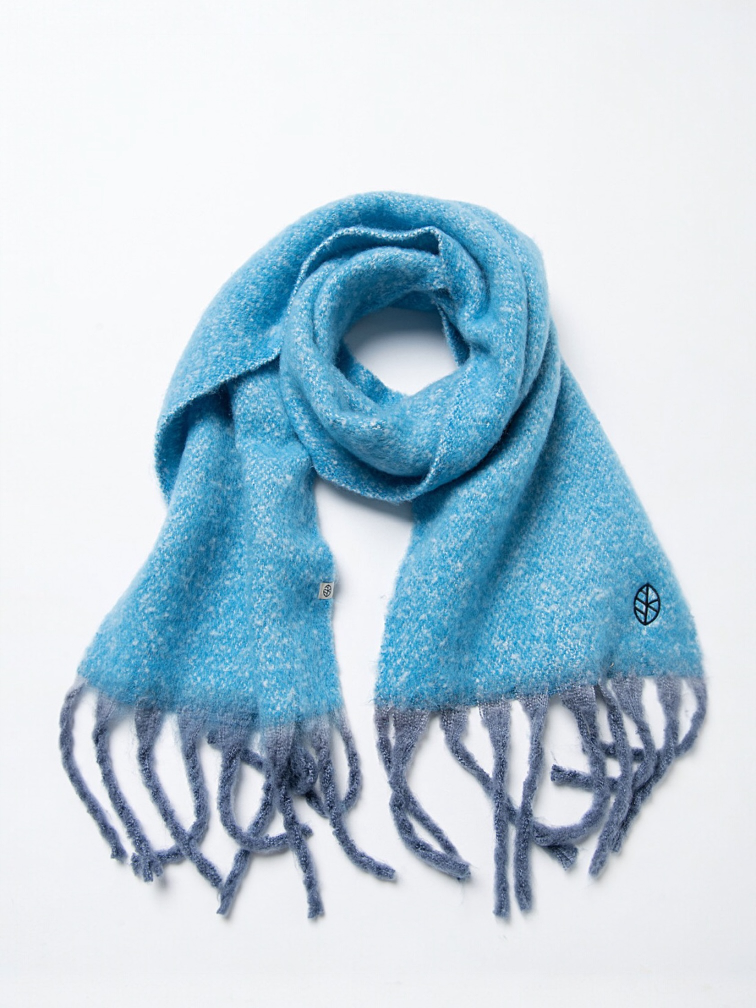 BUFANDA PLANA Y MULLIDA CON FLECOS AZUL