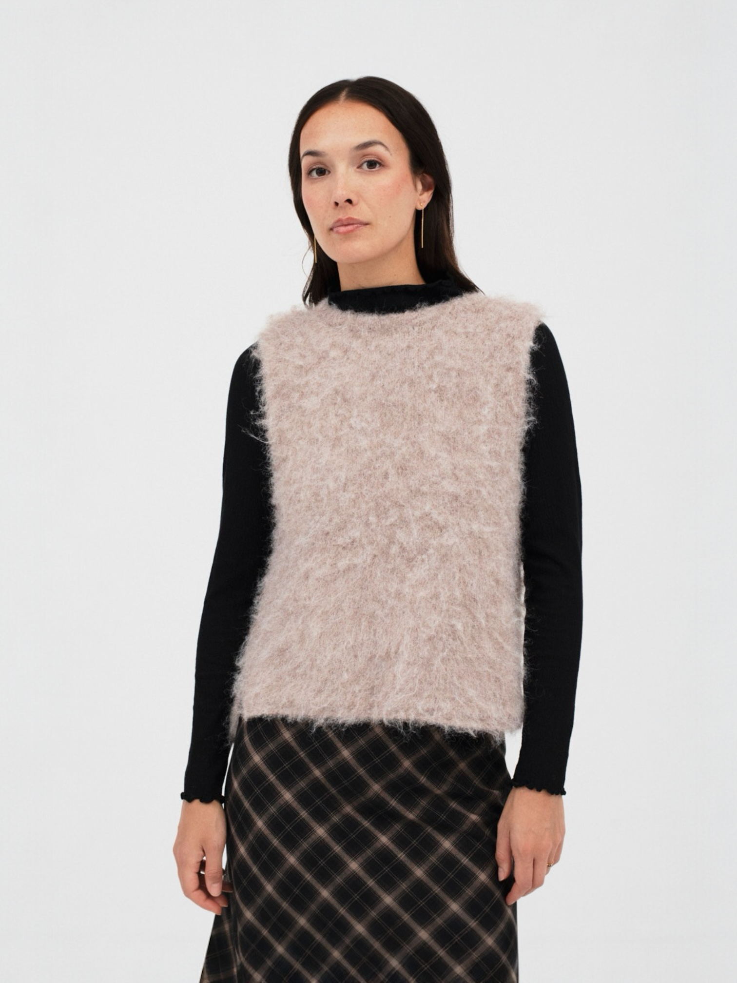 Chaleco de punto afelpado con cuello separado, una prenda elegante y cómoda que aporta un toque único a tus looks.