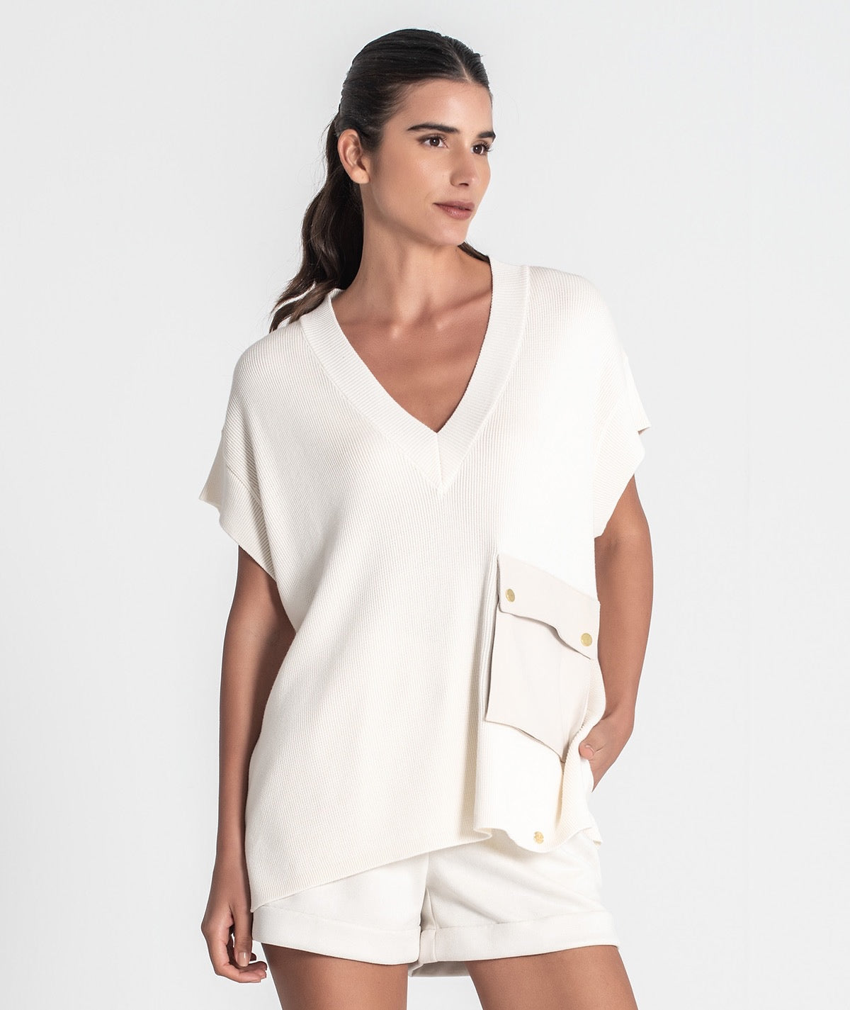 Chaleco con cuello en V y bolsillo frontal.