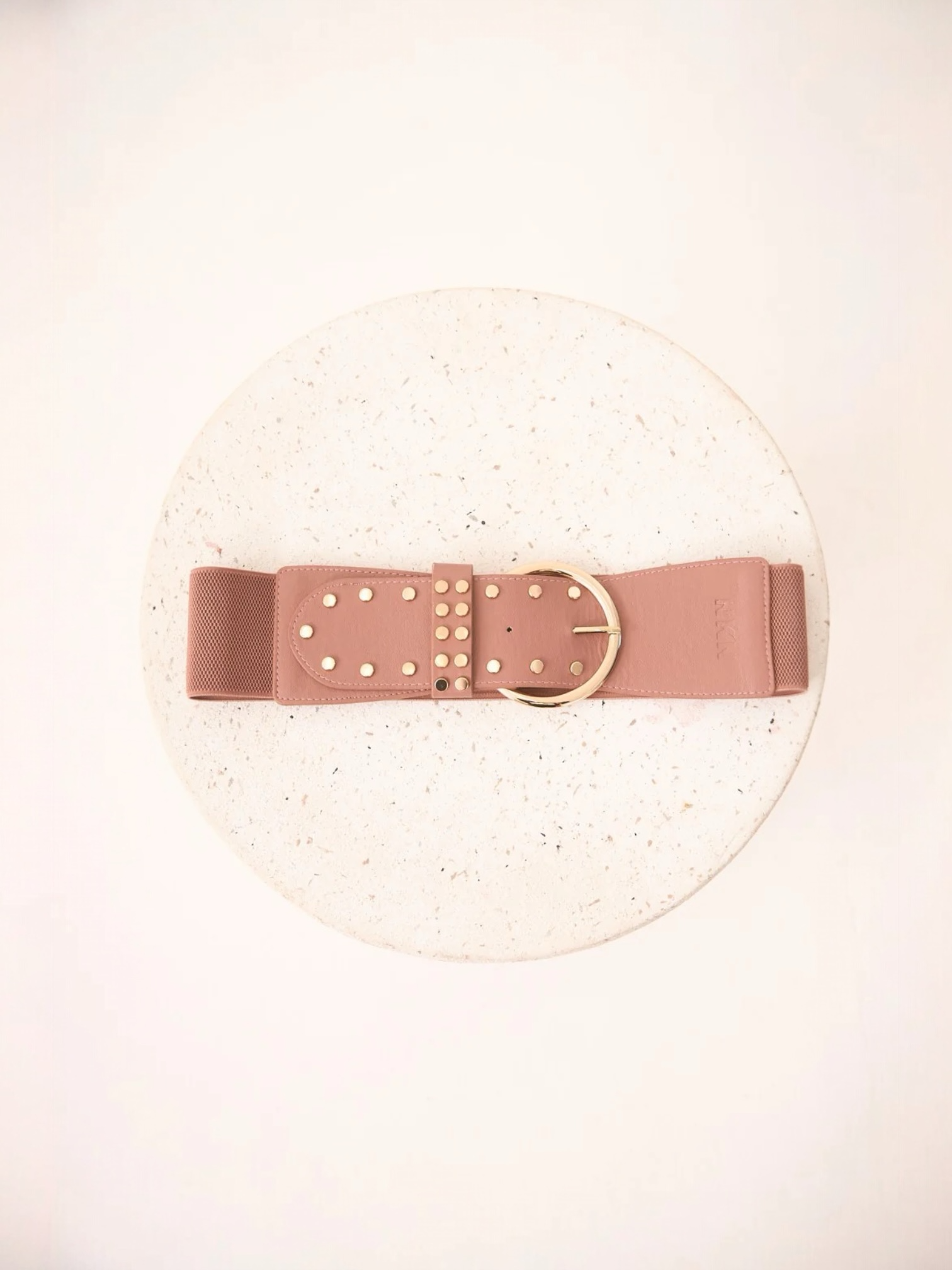 CINTURÓN ELÁSTICO TACHUELAS ROSA