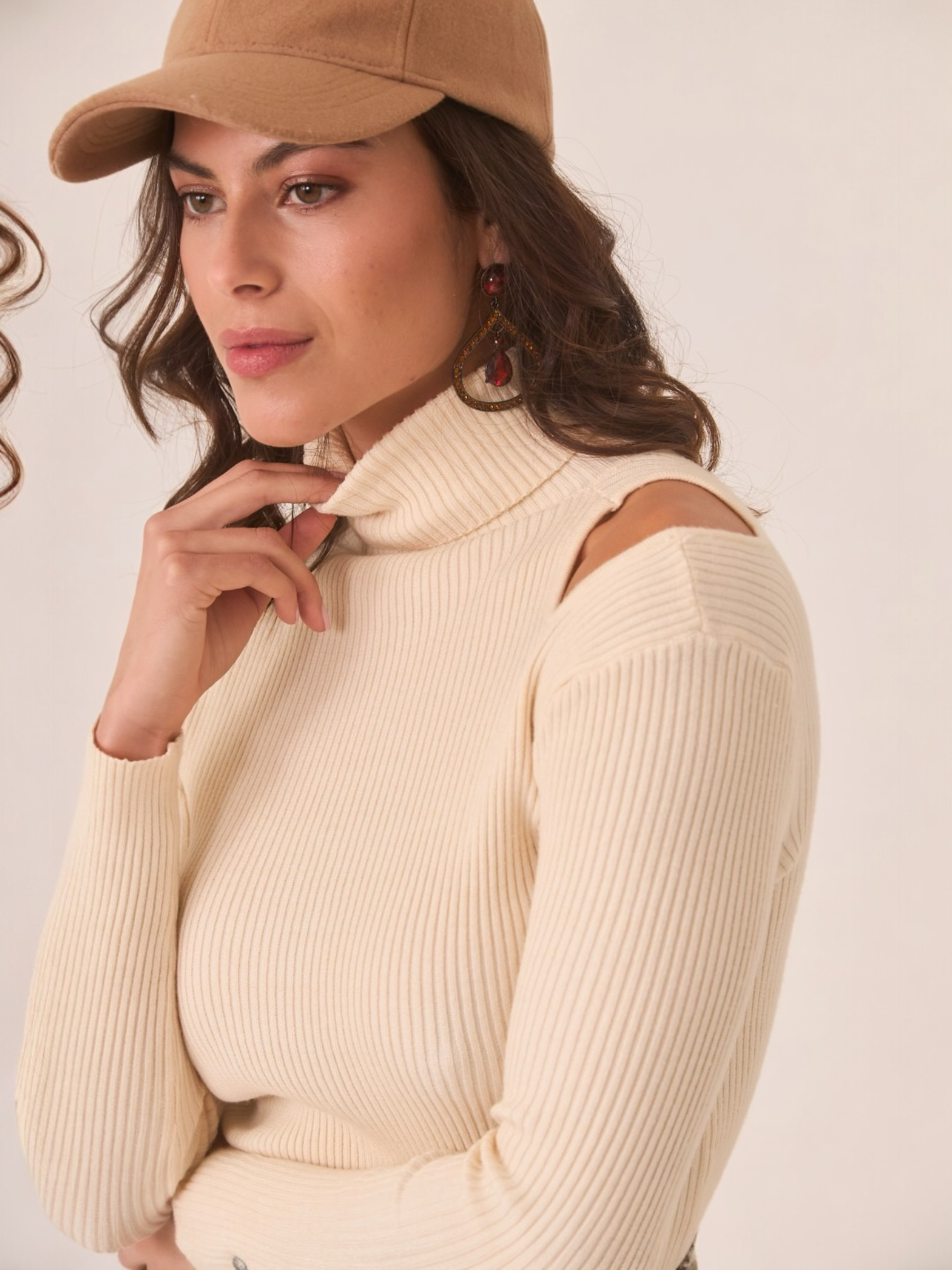 JERSEY CUELLO ALTO CUT OUT IVORY
