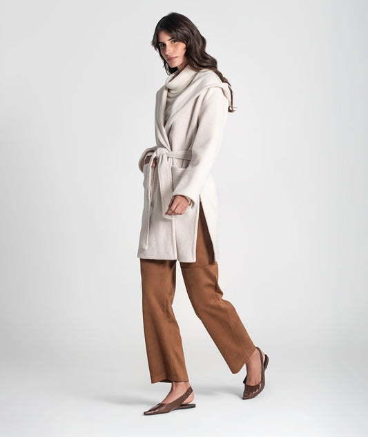 ABRIGO CON BOLSILLOS Y CAPUCHA CRUDO